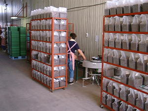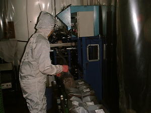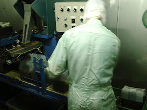 ●冷却室で熱を冷ました培地(無菌状態)をクリーンルームで
